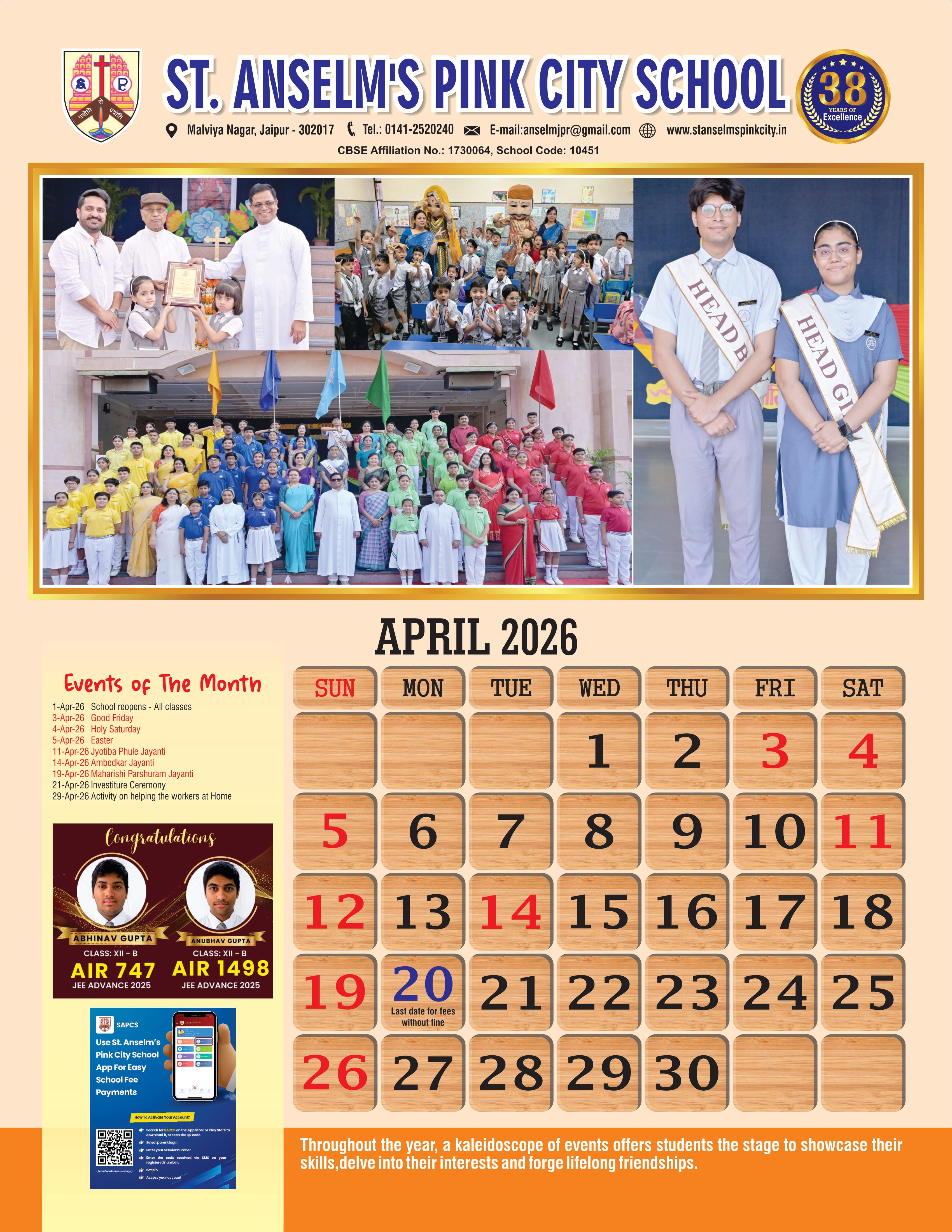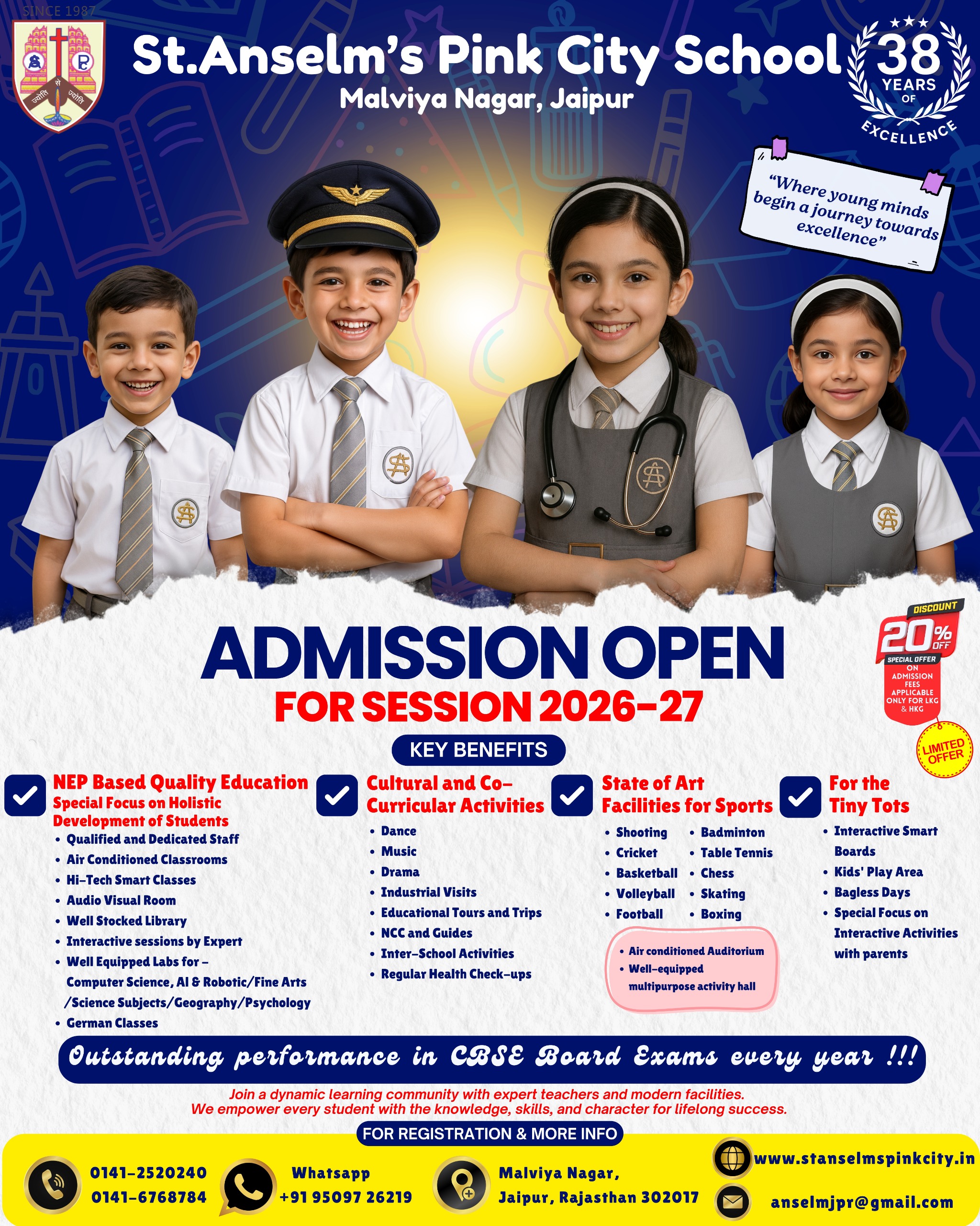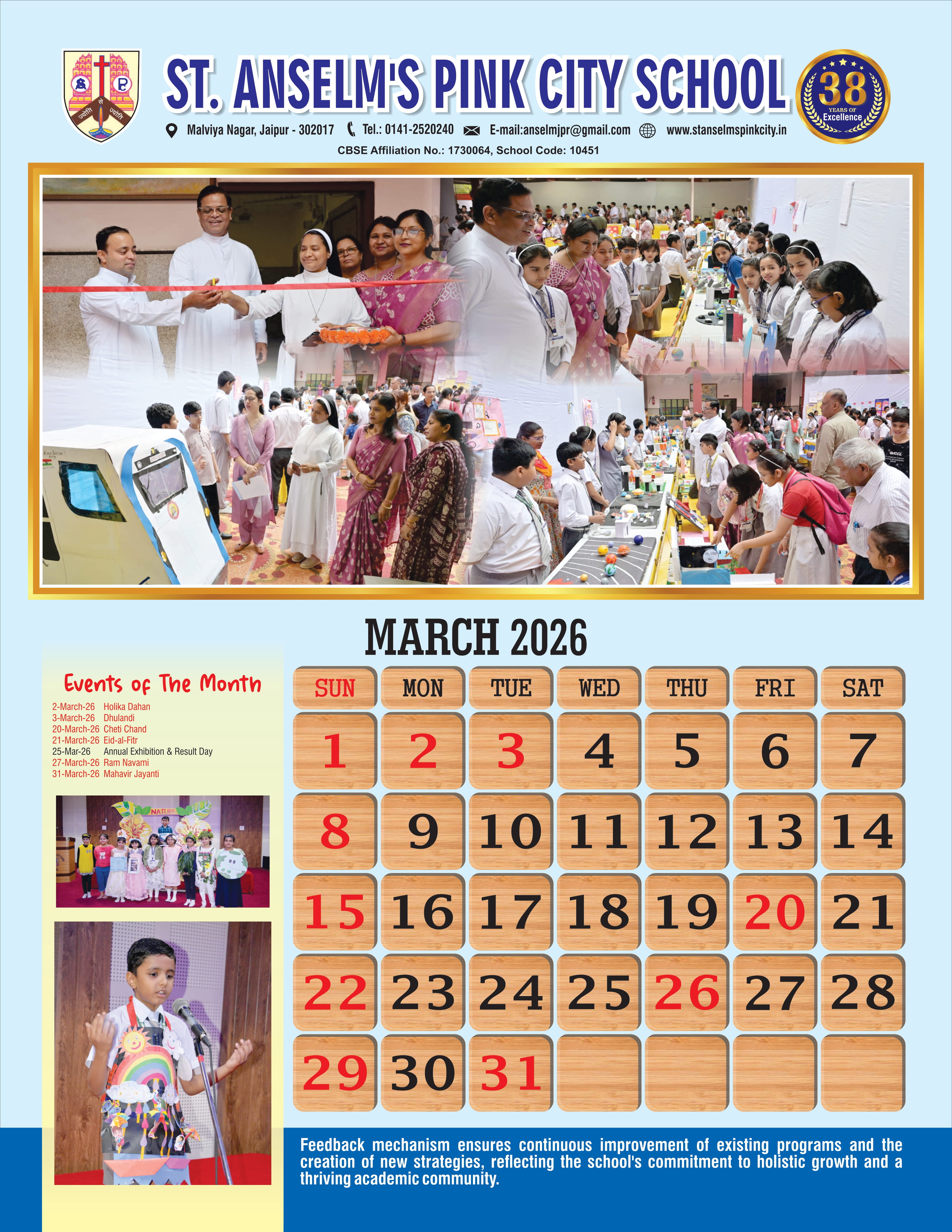 Welcome to another exciting academic year at St. Anselm Pink City School. It is with great enthusiasm that I extend my warm greetings to each one of you. Our school is not just a place of learning; it is a nurturing environment where students are encouraged to explore their potential, develop their skills, and foster a love for knowledge.